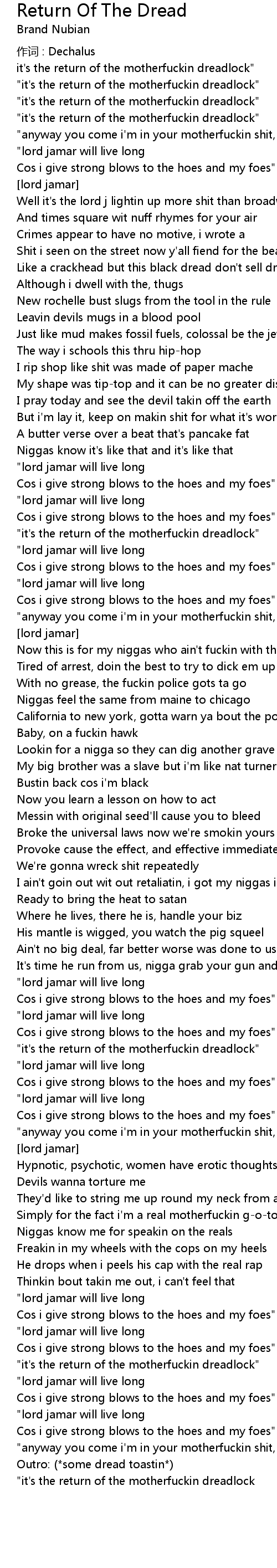 | it's the return of the motherfuckin dreadlock" | |