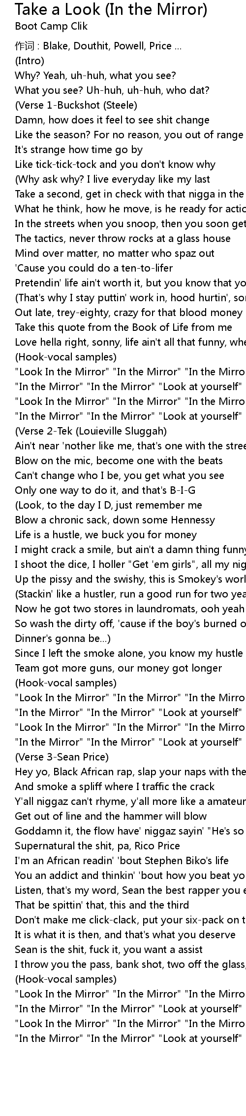 | "In the Mirror" "In the Mirror" "Look at yourself" |