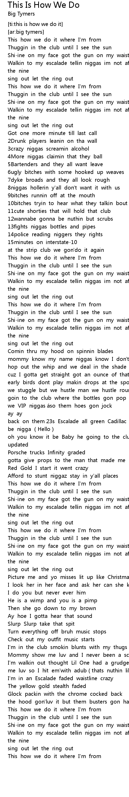 | [01:34.936] | Walkin to my escalade tellin niggas im not afraid to let the nine |