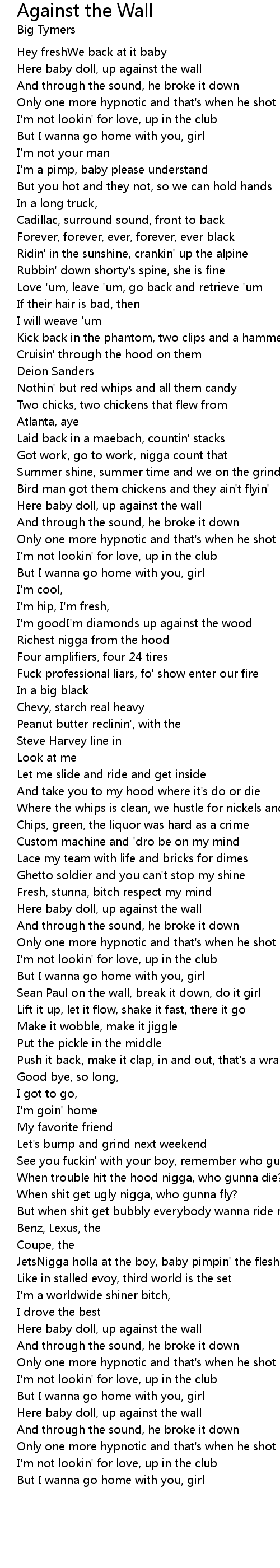 Here baby doll, up against the wall |