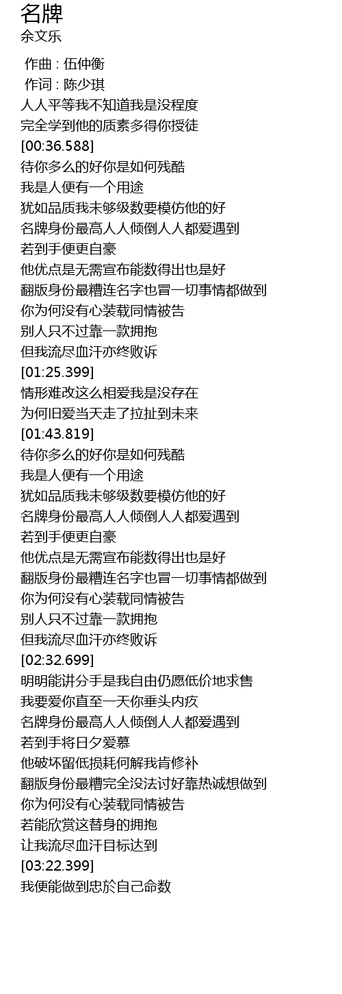 | [01:57.408] | 名牌身份最高人人倾倒人人都爱遇到 |