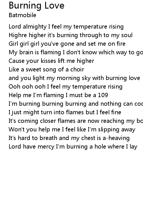 I'm burning burning burning and nothing can cool me |