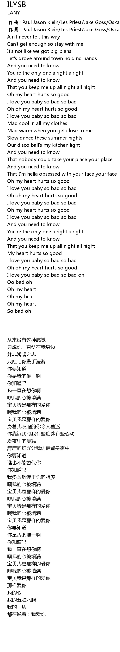 | [00:00.338] | 作词 : Paul Jason Klein/Les Priest/Jake Goss/Oskar Sikow |