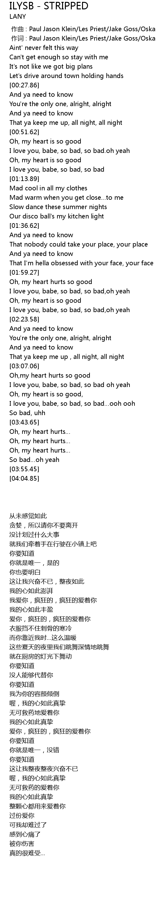 | [00:01.000] | 作词 : Paul Jason Klein/Les Priest/Jake Goss/Oskar Sikow |
