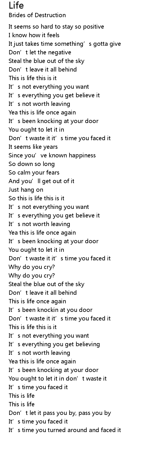 | This is life this is it | |