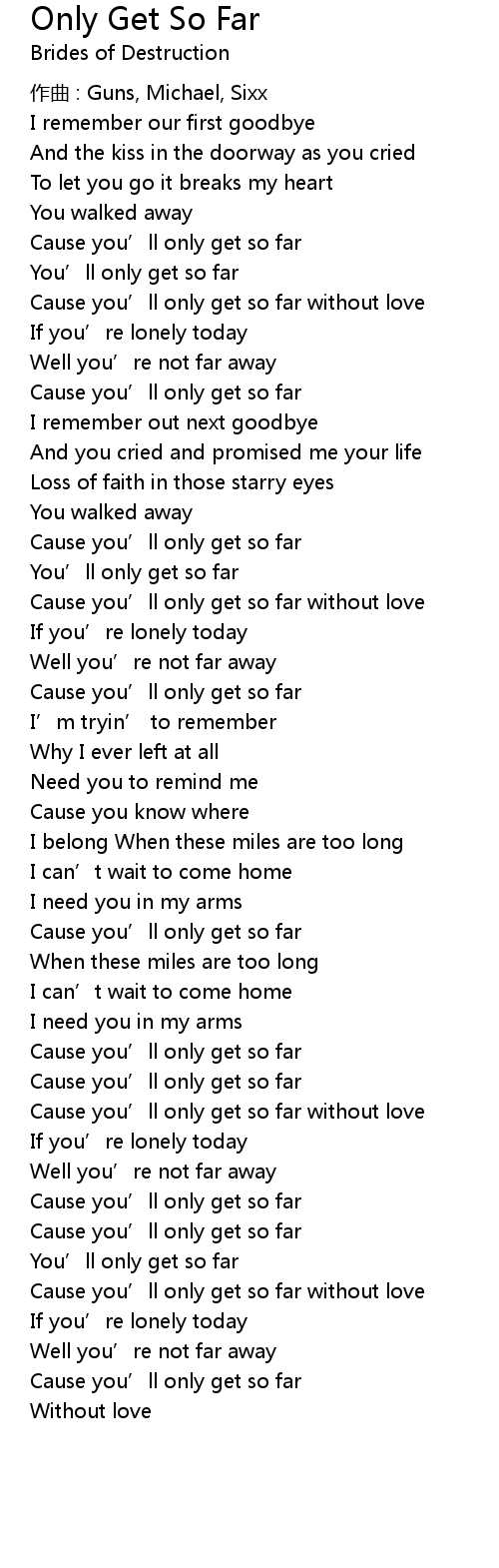 | Song | Only Get So Far |