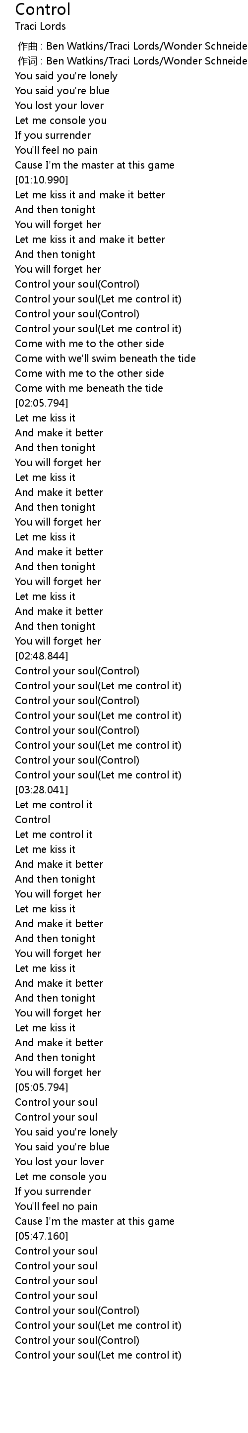 | [01:45.140] | Control your soul(Control) |