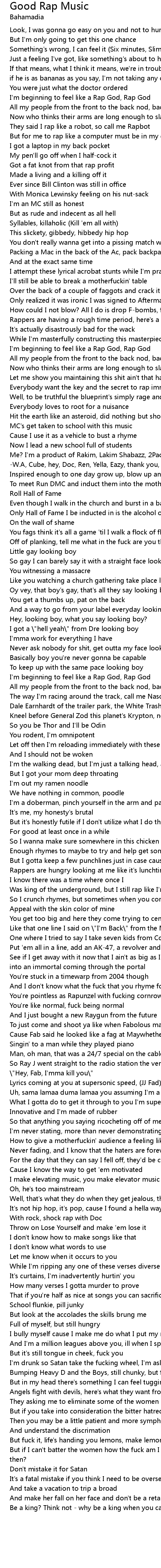 | You don' t really wanna get into a pissing match with this rappidy rap | |