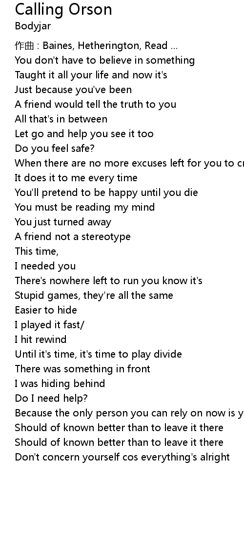 | Song | Calling Orson |