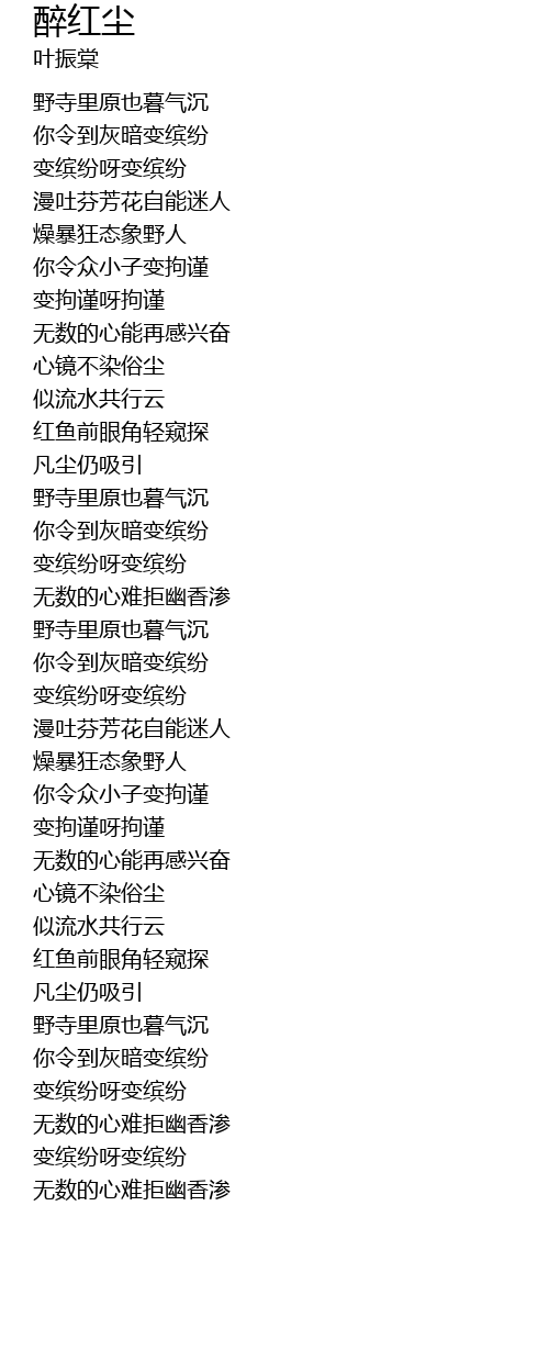 | Song | 醉红尘 |