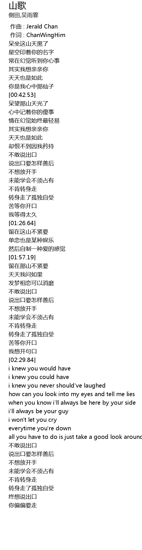 | [00:42.74] | 呆望那山天光了 |