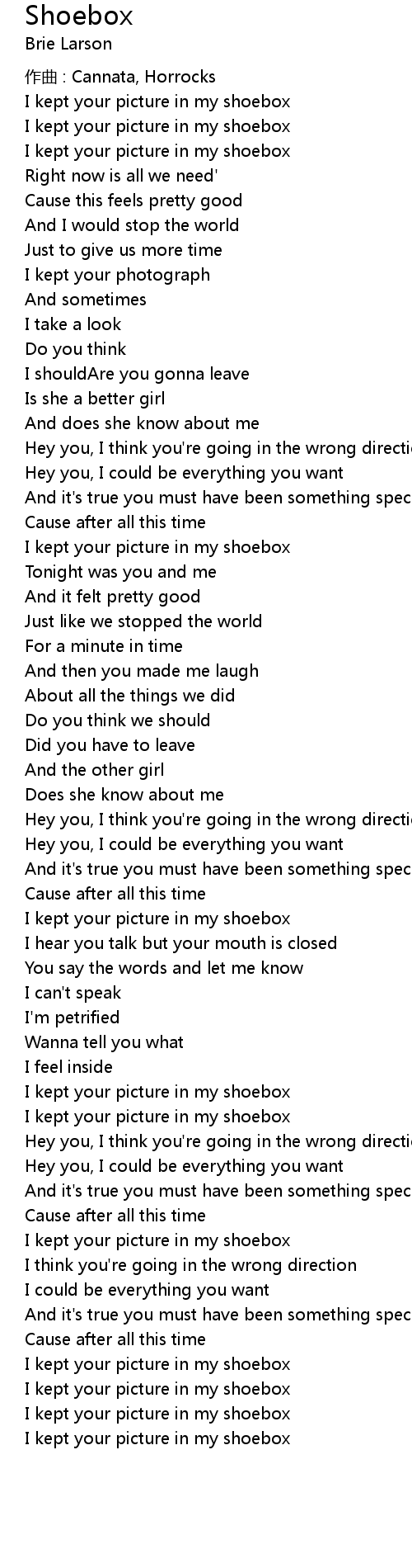| I kept your picture in my shoebox | |