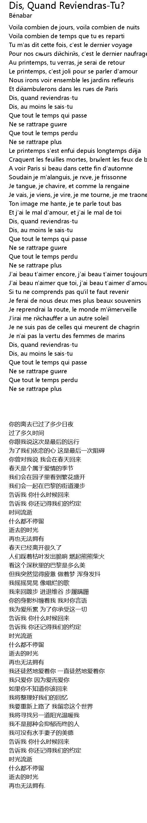 | [01:32.10] | Et j'ai le mal d'amour, et j'ai le mal de toi |