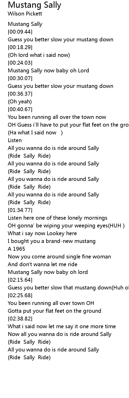 Mustang Sally now baby oh Lord |