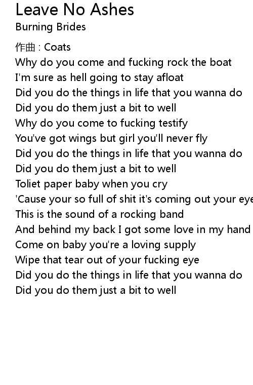 | Song | Leave No Ashes |