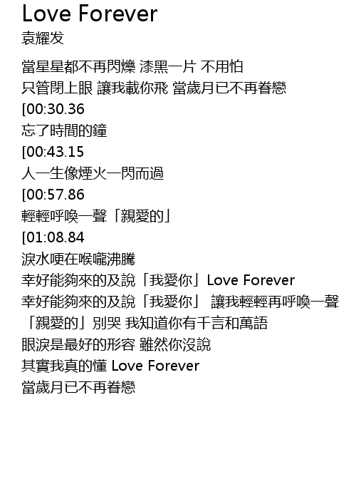 | [03:19.82] | 其實我真的懂 Love Forever |