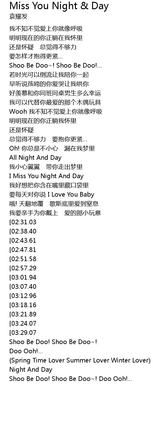 | [04:13.20][03:07.40] | I Miss You Night And Day |