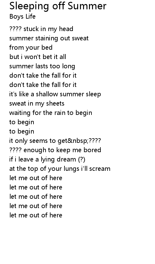 | Song | Sleeping off Summer |