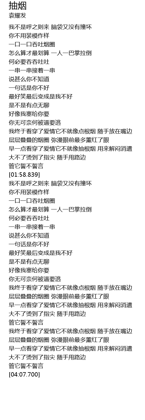 | [00:40.069] | 一口一口吞吐烟圈 |