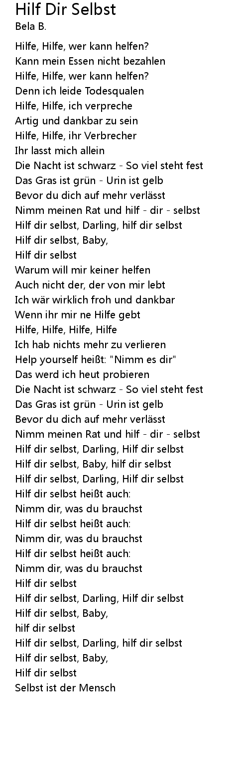 | Hilf dir selbst, Baby, hilf dir selbst | |
