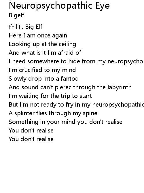| I need somewhere to hide from my neuropsychopathic eye | |