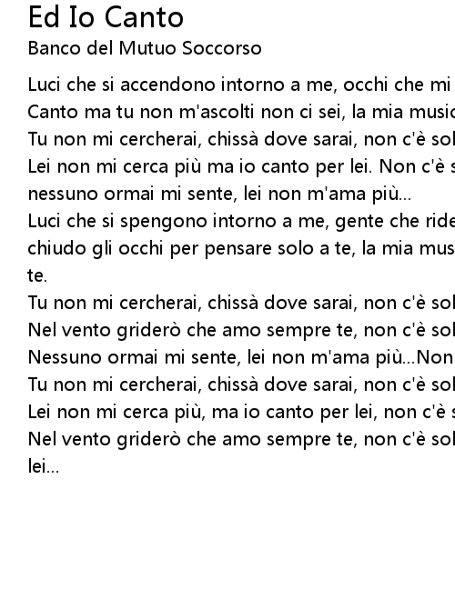 | Canto ma tu non m' ascolti non ci sei, la mia musica finisce qui, senza di te. | |