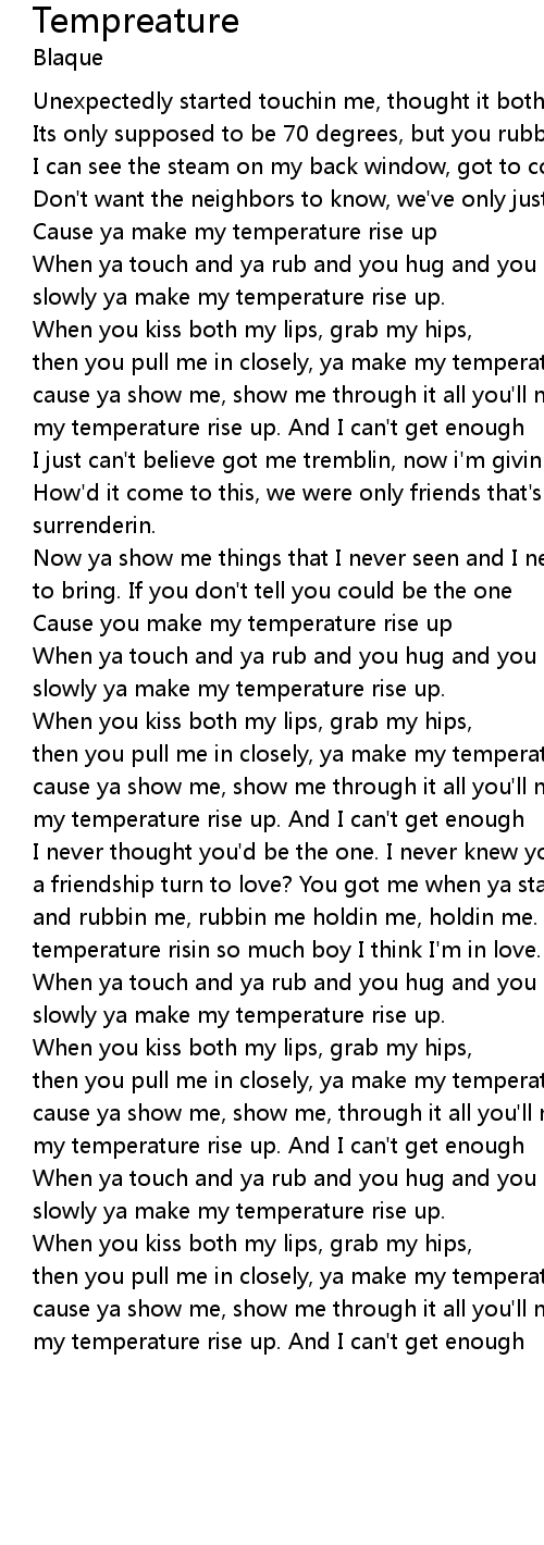 Cause ya make my temperature rise up |