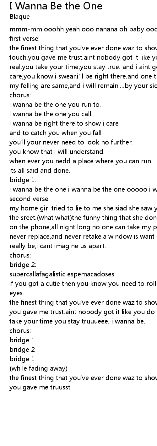 i wanna be the one i wanna be the one ooooo i wanna be the one (3times) |