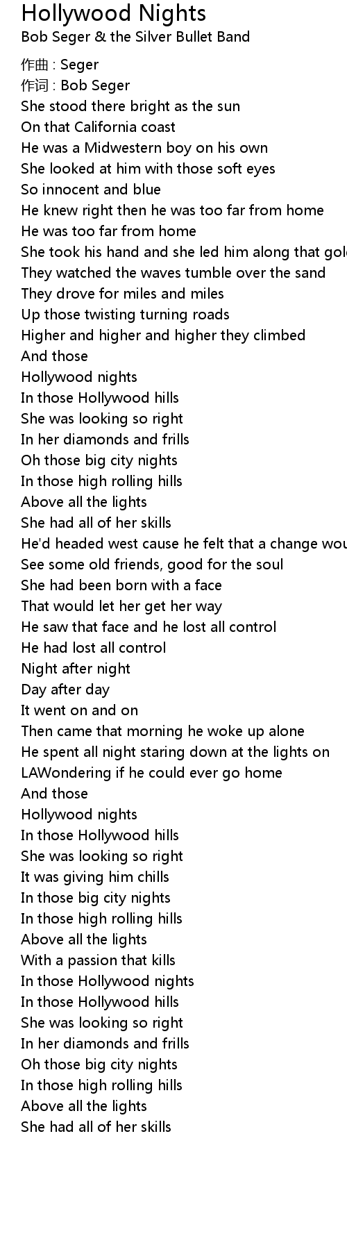 | Hollywood nights | |