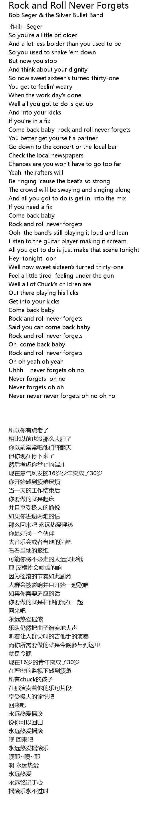 | [00:43.23] | Come back baby rock and roll never forgets |