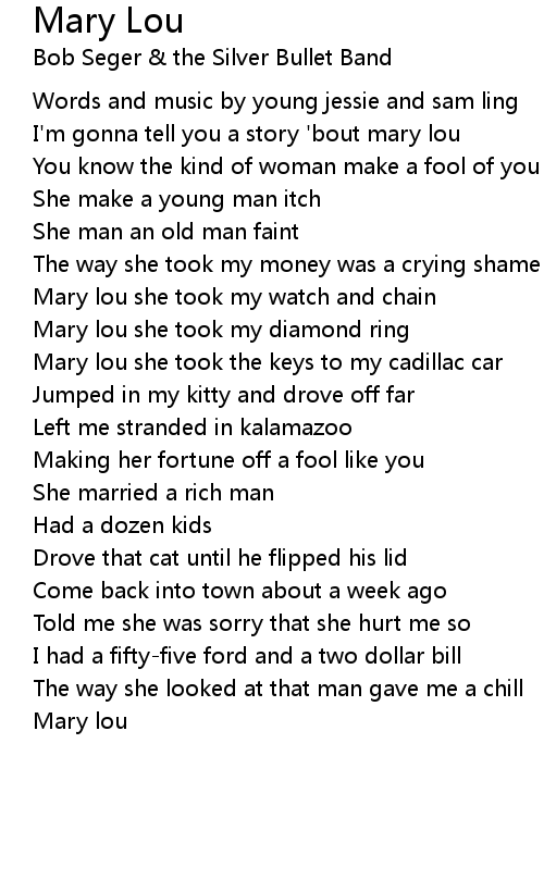 I'm gonna tell you a story 'bout mary lou |