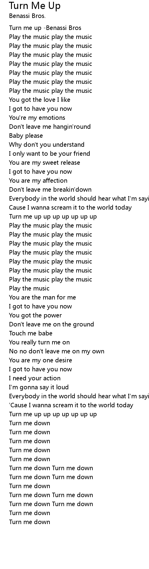 Turn me up up up up up up up |