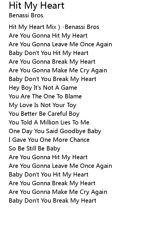 | [03:14.555] | Baby Don't You Hit My Heart |