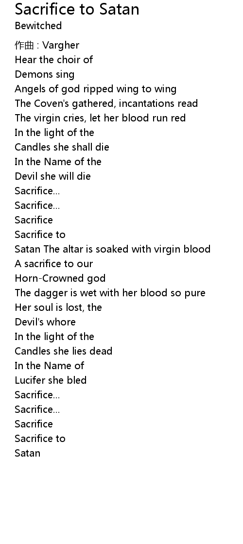 | Song | Sacrifice to Satan |