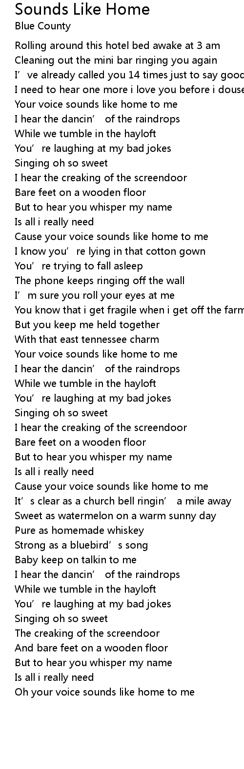 | Cause your voice sounds like home to me | |