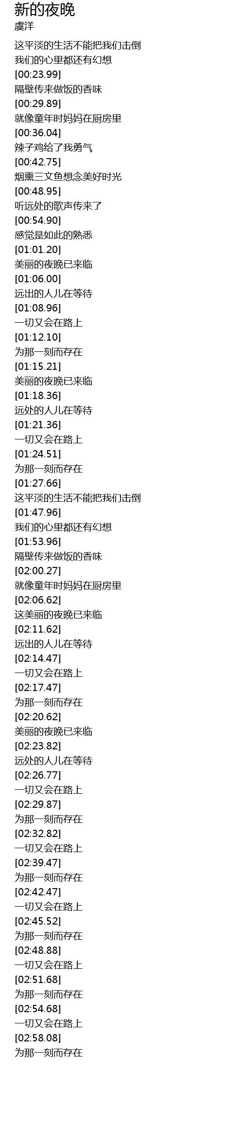 | [01:57.32] | 隔壁传来做饭的香味 |
