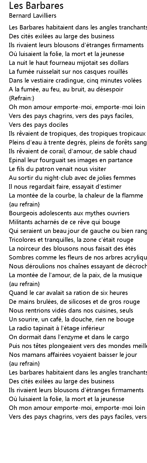 | Song | Les Barbares |