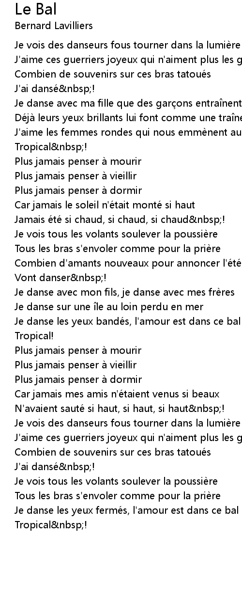 | Je danse les yeux ferme s, l' amour est dans ce bal | |