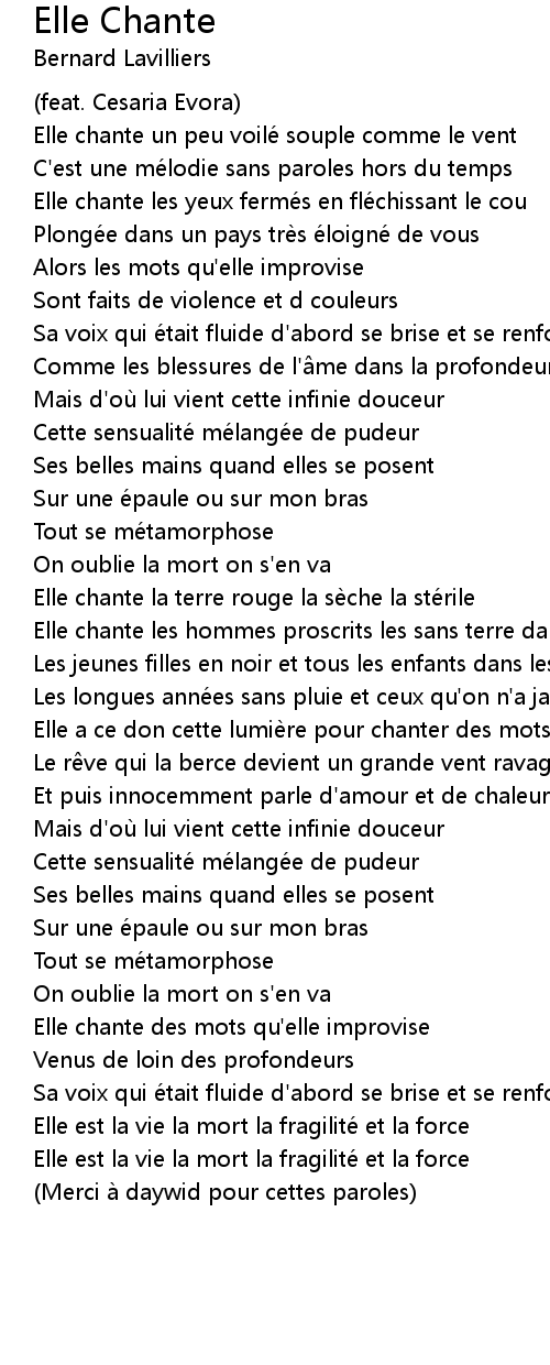 | Elle a ce don cette lumie re pour chanter des mots a sa terre | |