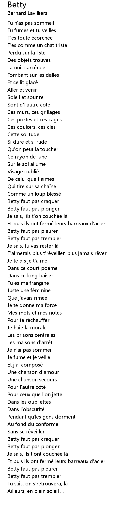 | Betty faut pas pleurer | |