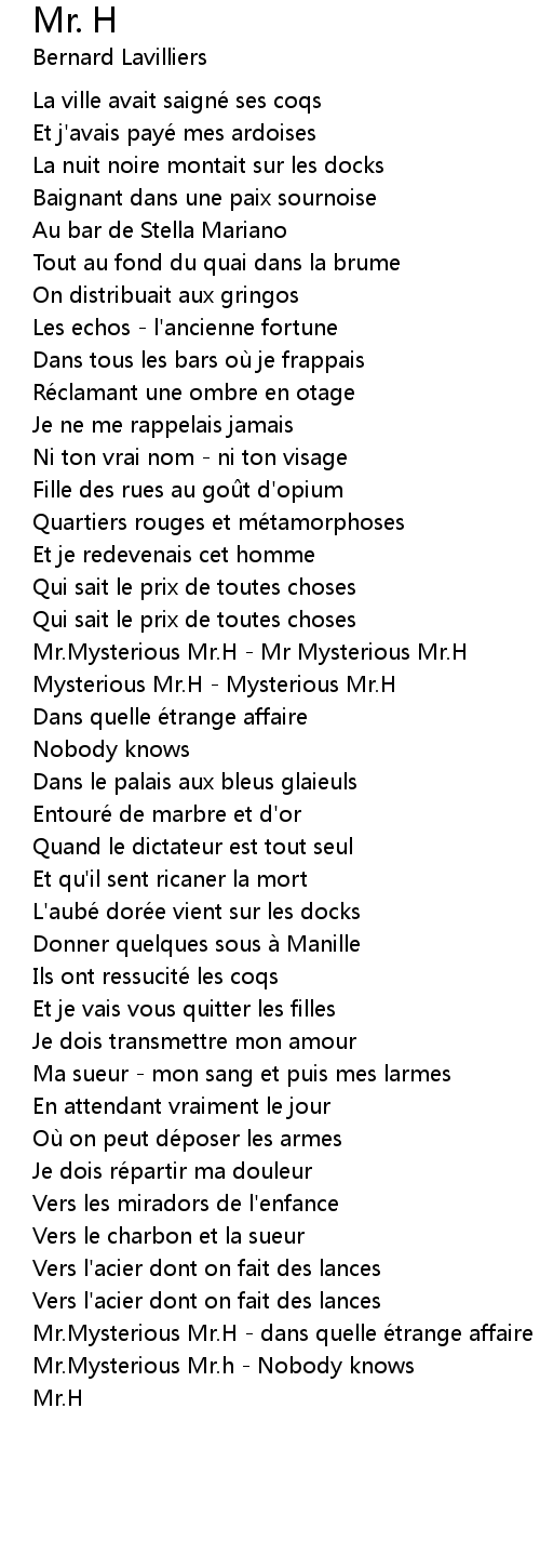 | Mr. Mysterious Mr. H dans quelle e trange affaire | |