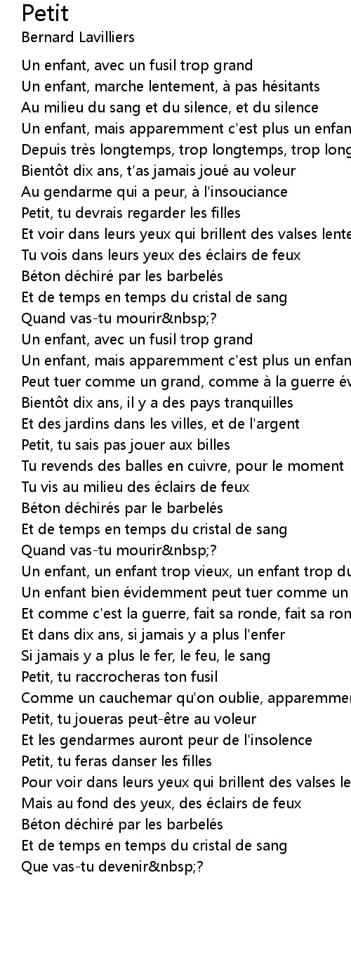 | Un enfant, un enfant trop vieux, un enfant trop dur | |