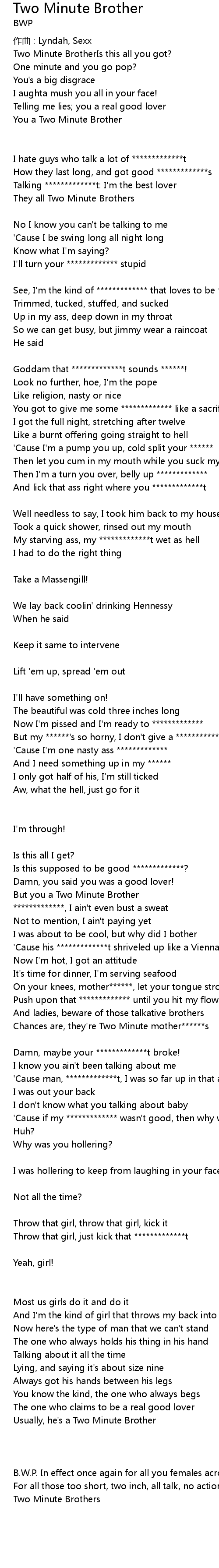 | 'Cause I'm one nasty ass ************* | |