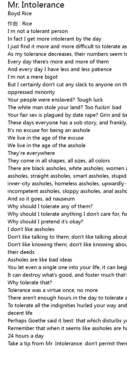 | Take a tip from Mr. Intolerance: don' t permit them to |