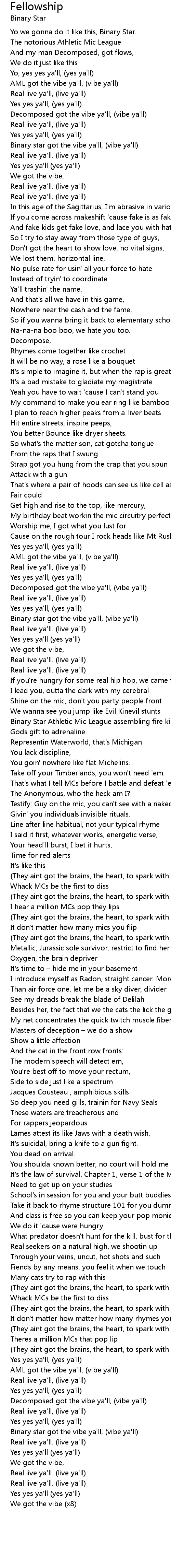 | Binary star got the vibe ya'll, (vibe ya'll) | |