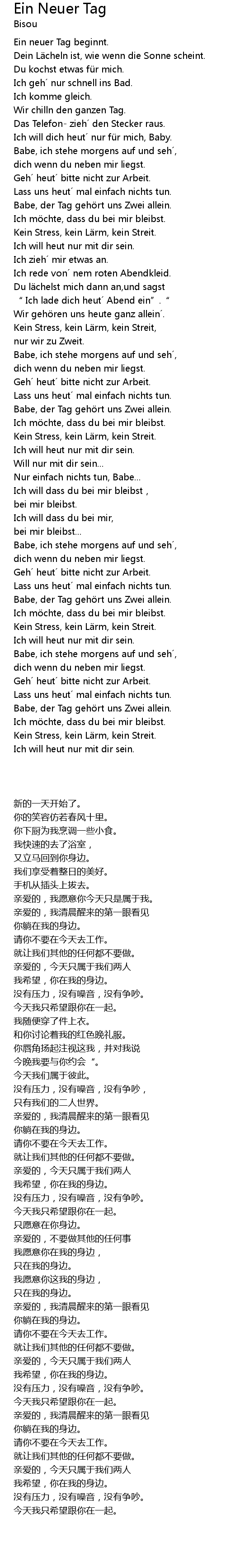 | [03:35.761] | Babe, der Tag gehört uns Zwei allein. |