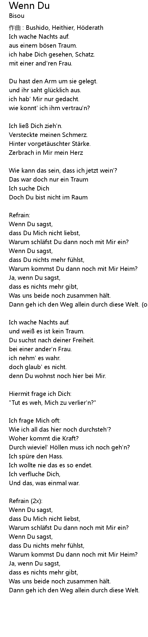 | Warum schläfst Du dann noch mit Mir ein? | |