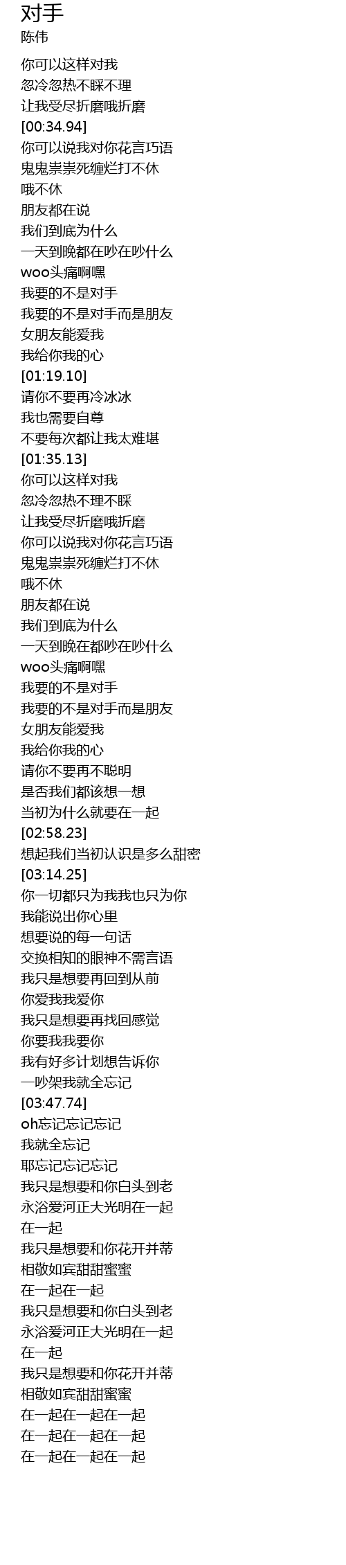 | [02:24.98] | 我要的不是对手 |
