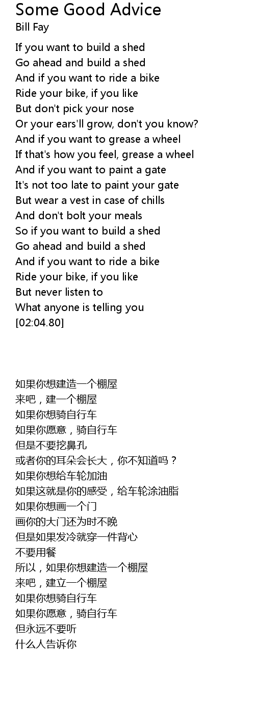 | [01:01.95] | If that's how you feel, grease a wheel |