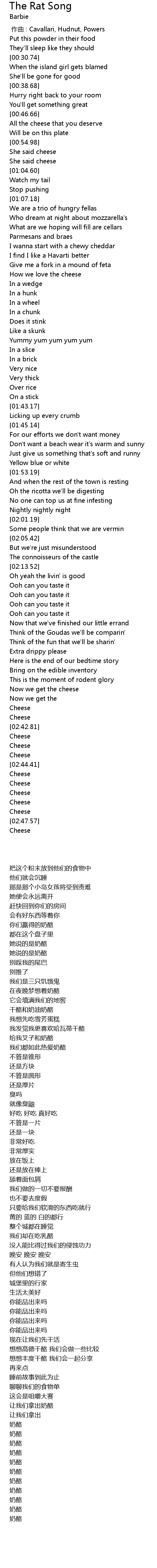 | [02:43.35] | Cheese |